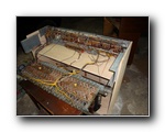 O gabinete foi destruído por cupins, a mecânica estava parada, sem lubrificação. O primeiro passo da restauração foi a transferência de todas as partes para uma gabinete provisório e aberto para facilitar os trabalhos de restauro. A segunda parte será a de colocá-lo totalmente funcionando, para em seguida iniciar a substituição de peças em estado critico.
